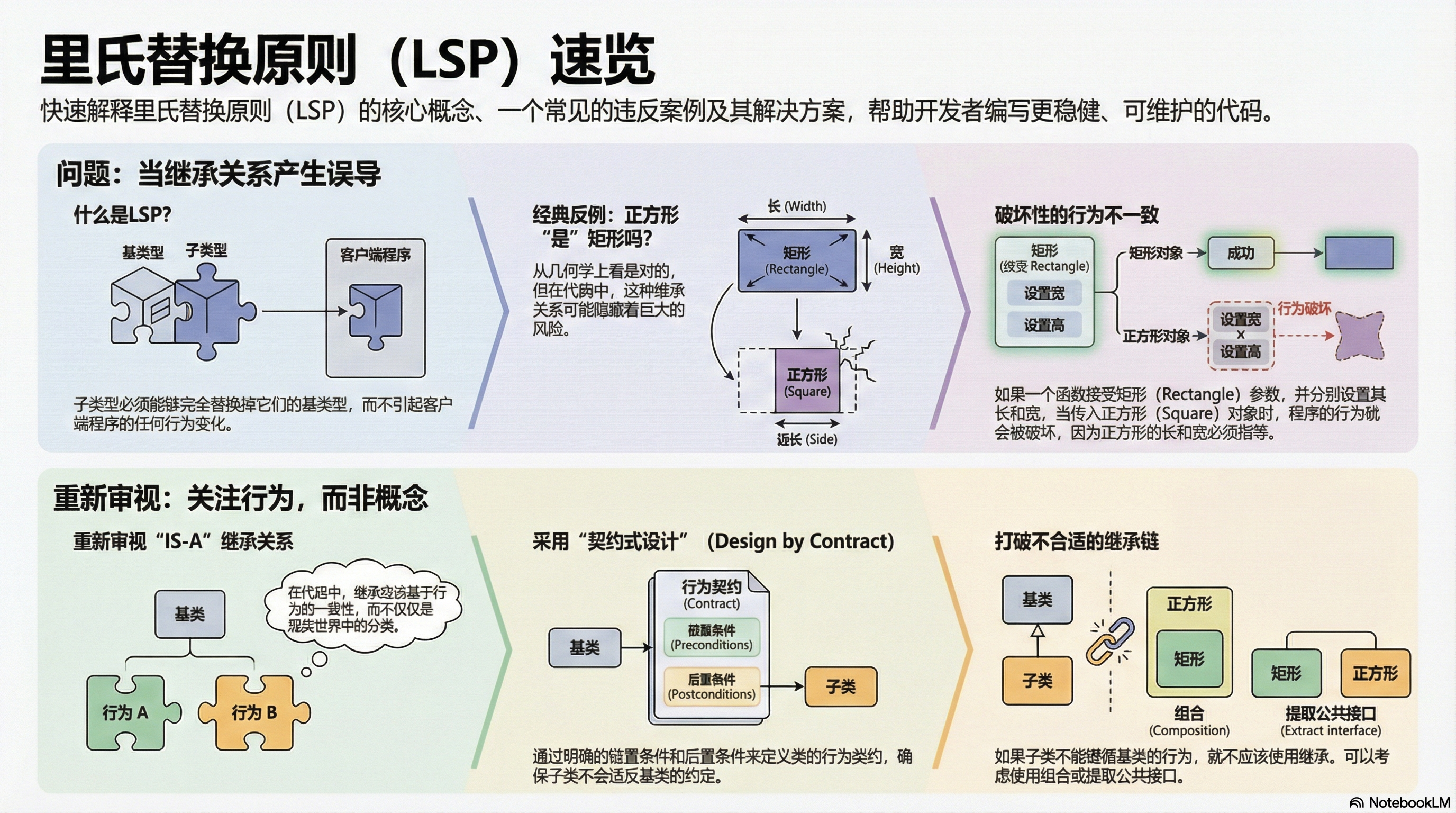 coding·2024-01-15在代码中,为什么说"正方形是矩形"是个谎言?里氏替换原则(LSP)带来的5个惊人启示深入探讨里氏替换原则(LSP),揭示为何"正方形是矩形"在代码世界中是个谎言,以及如何避免常见的设计陷阱。设计原则SOLID面向对象▶ 视频♫ 音频◧ PPT◎ 导图